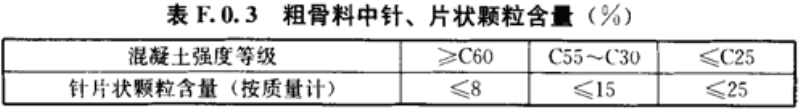 F.0.3 粗骨料中针、片状颗粒含量应符合表F.0.3的规定。