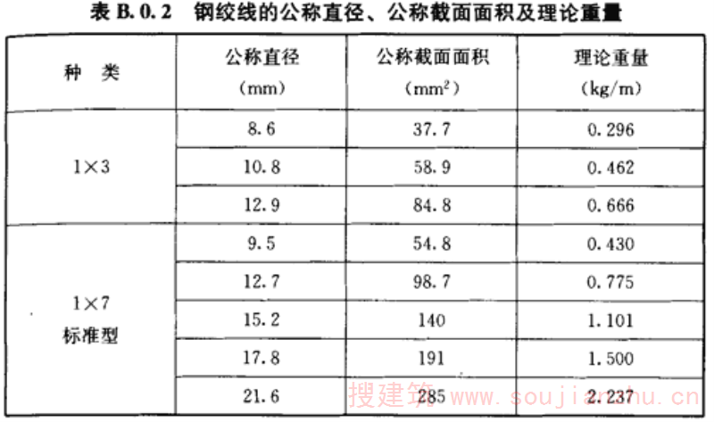 B.0.2 钢绞线的公称直径、公称截面面积及理论重量,应符合表B.0.2的规定。