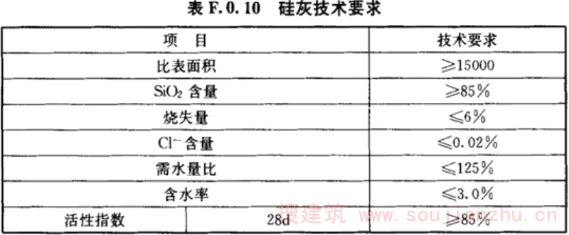 F.0.10 硅灰应符合表F.0.10的规定。