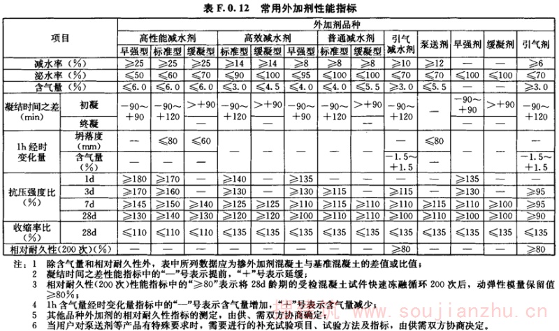 F.0.12 常用外加剂性能指标应符合表F.0.12的规定。