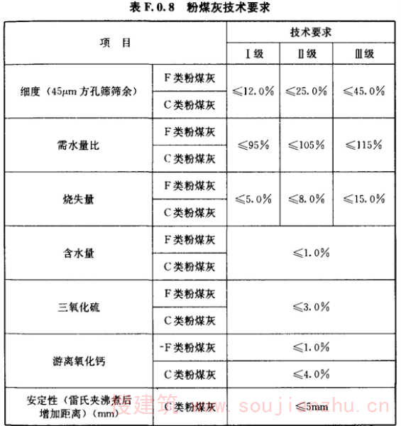 F.0.8 粉煤灰应符合表F.0.8的规定。