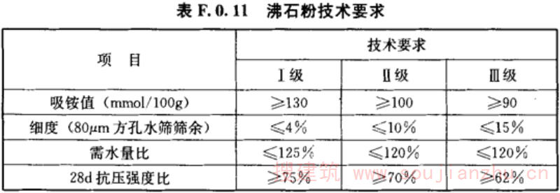 F.0.11 沸石粉应符合表F.0.11的规定。