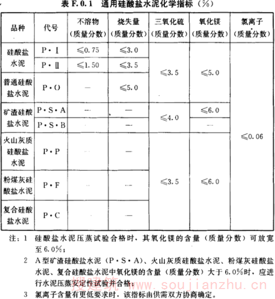 F.0.1 通用硅酸盐水泥化学指标应符合表F.0.1的规定。