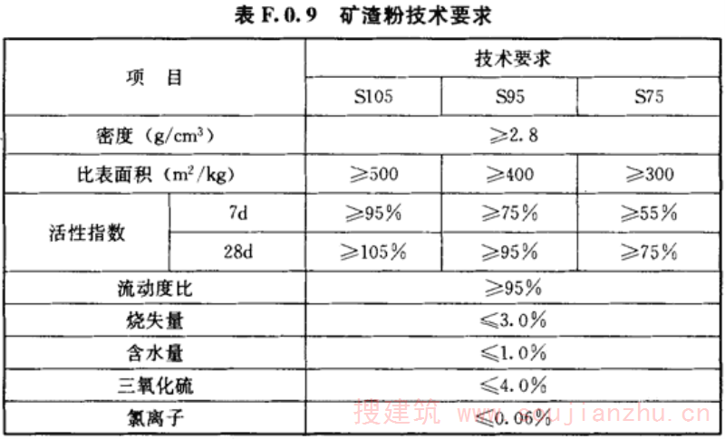 F.0.9 矿渣粉应符合表F.0.9的规定。