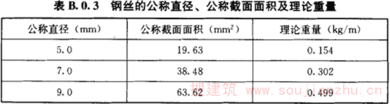 B.0.3 钢丝的公称直径、公称截面面积及理论重量,应符合表B.0.3的规定。