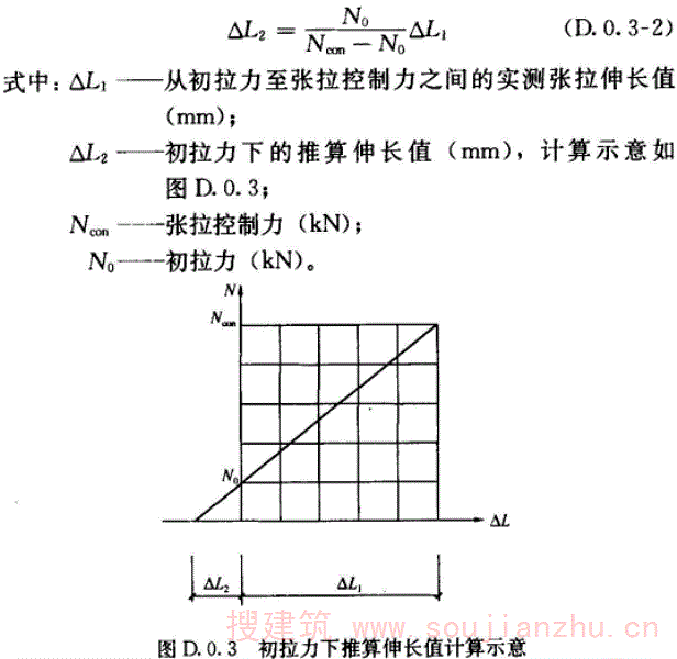 D.0.3 预应力筋张拉伸长值可按下列方法确定: