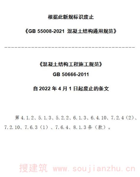 现批准《混凝土结构工程施工规范》为国家标准,编号为GB 50666-2011,自2012年8月1日起实施。其中,第4.1.2、5.1.3、 5.2.2、 6.1.3、 6.4.10、 7.2.4 (2)、 7.2.10、 7.6.3(1)、7.6.4、8.1.3条(款)为强制性条文,必须严格执行。