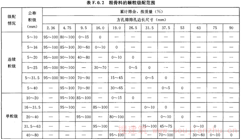 F.0.2 粗骨料的颗粒级配范围应符合表F.0.2的规定。