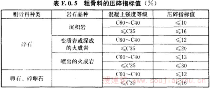 F.0.5 粗骨料的压碎指标值应符合表F.0.5的规定。