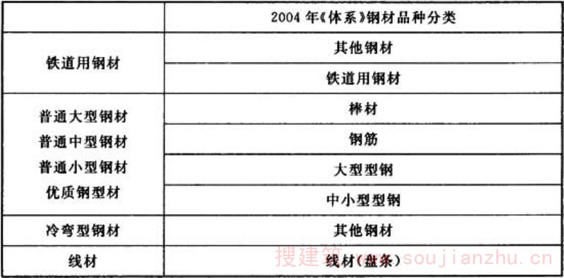 1.0.1 2004年1月1日我国实施《中国钢铁工业生产统计指标体系》,有关钢材品种的分类见表1: 表1 2004年《体系》钢材品种分类