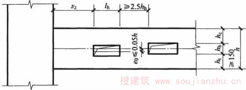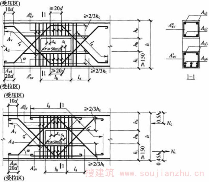 3 在框架边梁与扁梁交叉的结合部,应计入扁梁传给边梁的附加剪力,边梁的箍筋应适当加强。