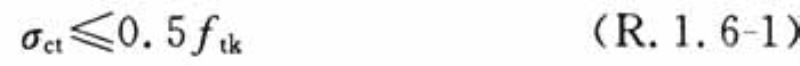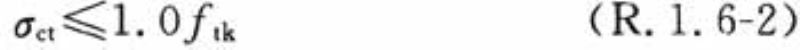R.1.6 预应力混凝土扁梁的预压应力不宜过大,扁梁受拉边缘混凝土产生的拉应力应符合下列表达式的要求: