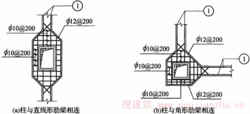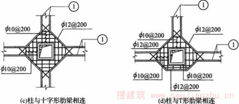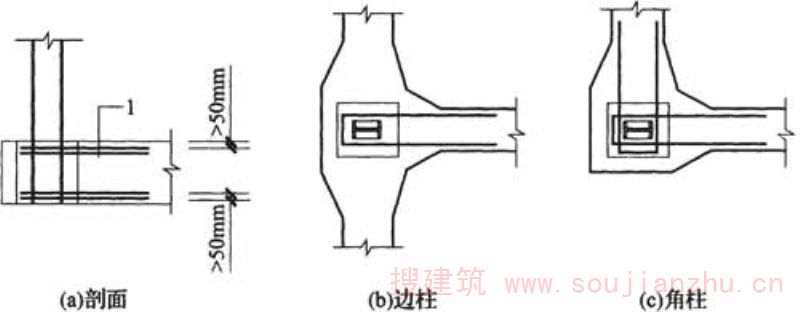 图R.3.4 扁梁柱节点的配筋构造