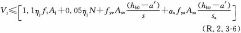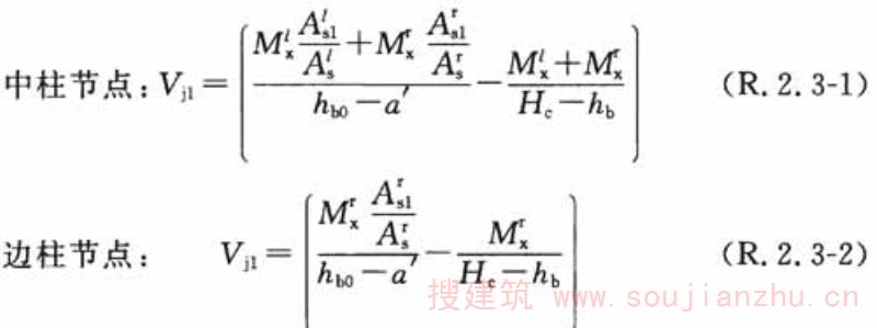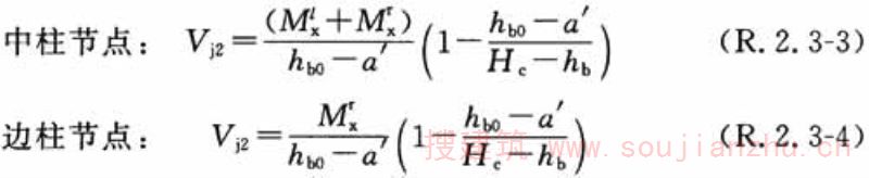 2 框架节点在图R.2.3-2所示的核心区2范围内破坏时,其剪力可按下列公式计算: