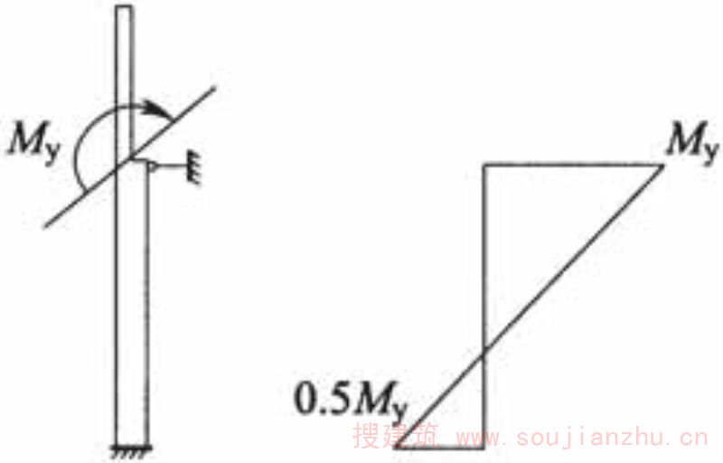 1 风荷载作用下,某一方向扁梁除应承受本身的弯矩和剪力外,尚应承受与之相交的另一方向扁梁传来的扭矩,其扭矩可按下列公式计算: