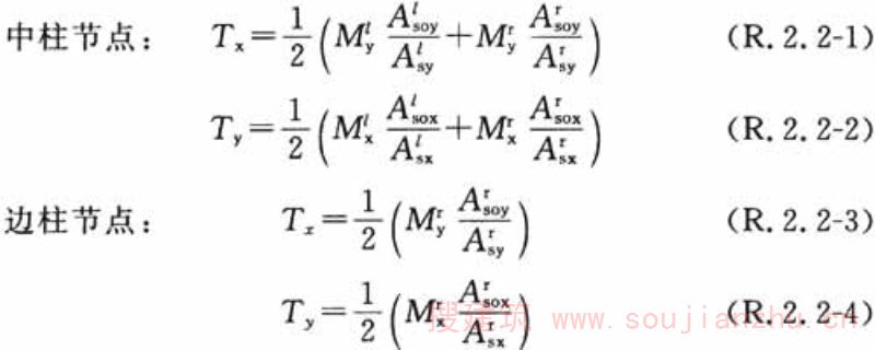 A l sox 、A r sox ——x向框架节点左、右侧扁梁端未通过柱内的纵向受拉钢筋截面积(mm 2 );