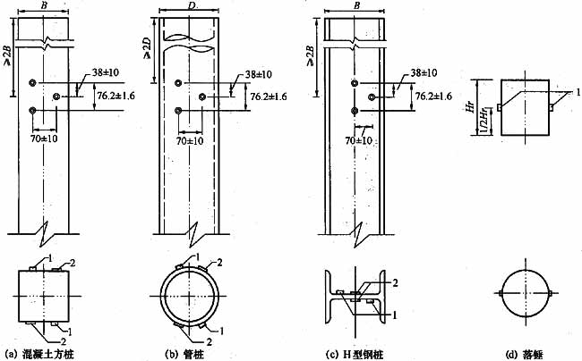 F.0.2 在桩顶下桩侧表面安装应变传感器和加速度传感器(图F.0.1a~图F.0.1c)时,应符合下列规定: