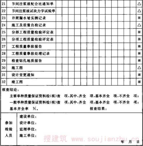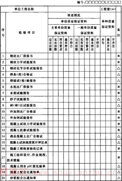注:1 表中※代表主要单种质量保证资料,△代表一般单种质量保证资料;
