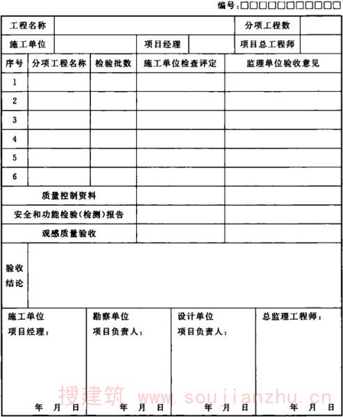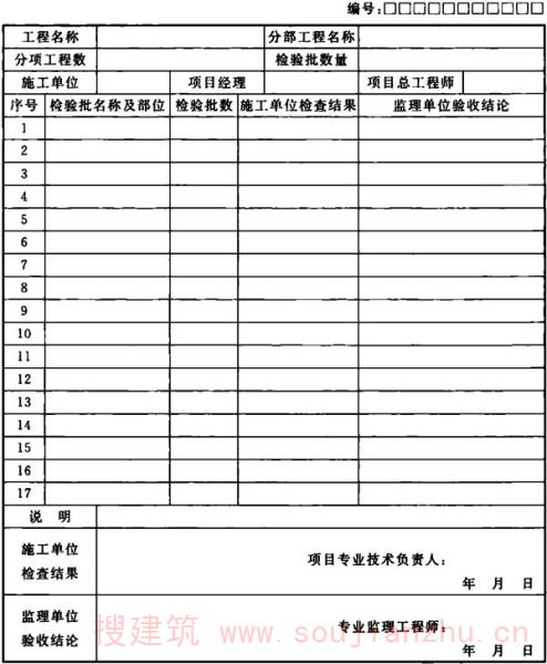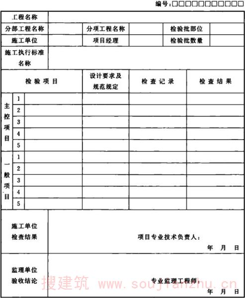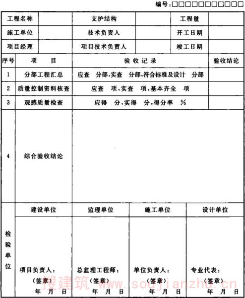 注:1 表中的“检验项目”内有缺项(或工程无该项)时,该项不检验,不参加计分,可不填写;