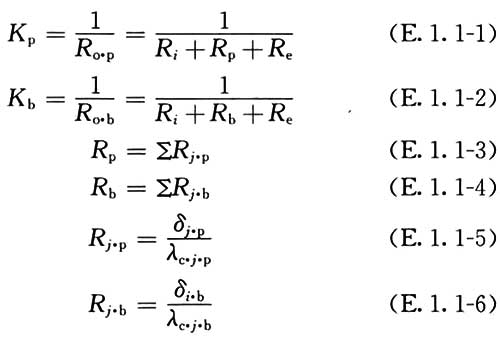K p 、K b ——分别为外墙主体部位和结构性热桥部位的传热系数[W/(m 2 ·K)],按本规程E.1的计算方法进行计算;