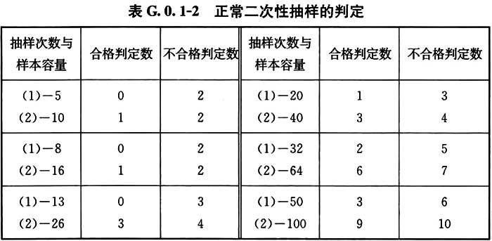 G.0.1 填充墙砌体植筋锚固力检验抽样判定应按表G.0.1-1和表G.0.1-2判定。