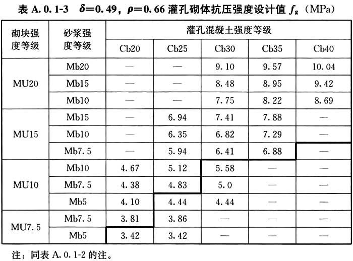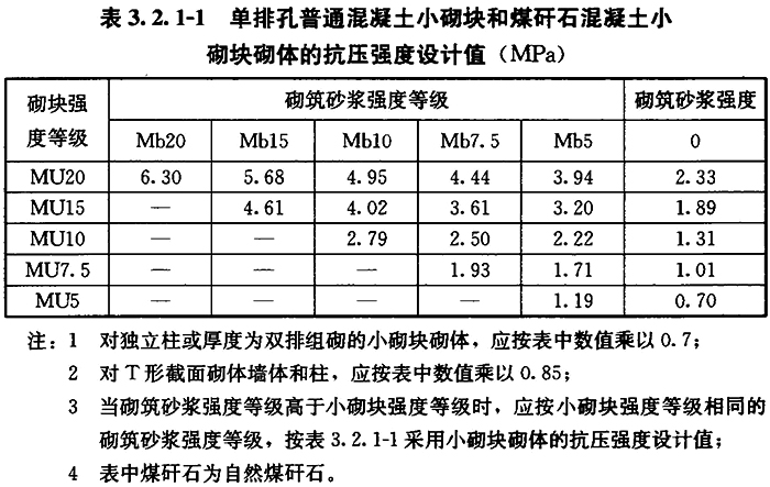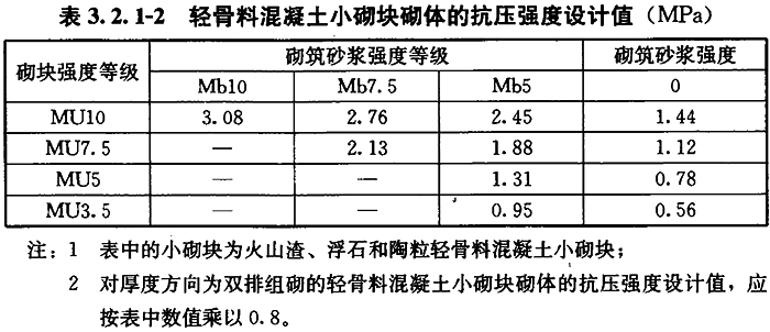 3 轻骨料混凝土自承重砌块材料强度等级和砌体计算指标;