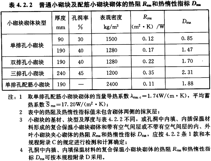 表征小砌块外墙体反抗温度波动和热流波动的无量纲指标,用符号D表示。小砌块建筑外墙体的热惰性指标应取考虑结构性热桥部位影响后的平均热惰性指标,用符号D m 表示。