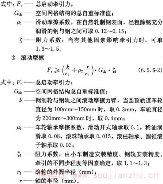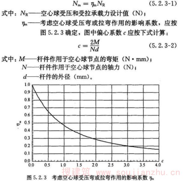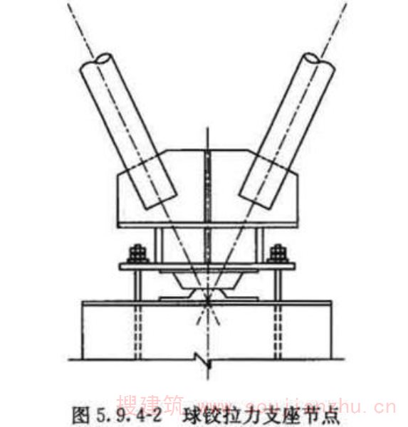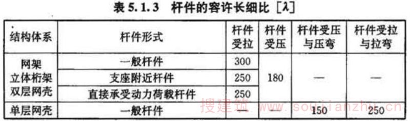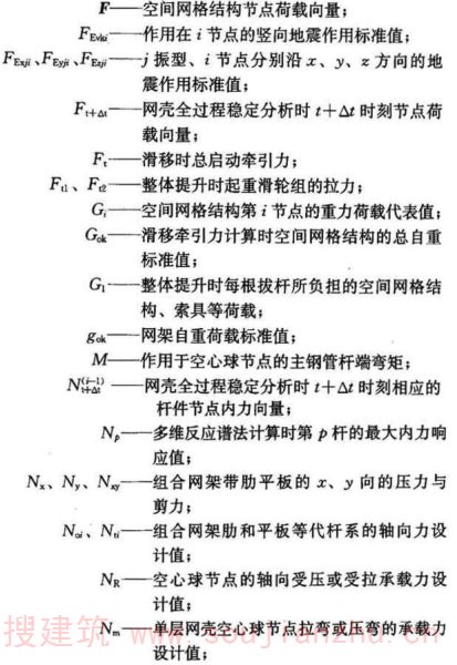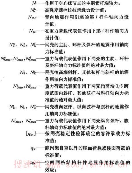 1.0.4 单层网壳由于承受集中力对于其内力与稳定性不利,故不宜设置悬挂吊车,而网架与双层网壳结构有很好的空间受力性能,承受悬挂吊车荷载后比之平面桁架杆力能迅速分散且内力分布比较均匀。但动荷载会使杆件和节点产生疲劳,例如钢管杆件连接锥头或空心球的焊缝、焊接空心球本身及螺栓球与高强度螺栓,目前这方面的试验资料还不多。故本规程规定当直接承受工作级别为A3级以上的悬挂吊车荷载,且应力变化的循环次数大于或等于5×104次时,可由设计人员根据具体情况,如动力荷载的大小与容许应力幅经过专门的试验来确定其疲劳强度与构造要求。