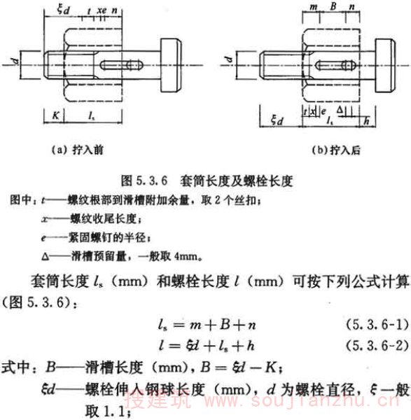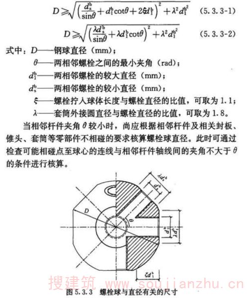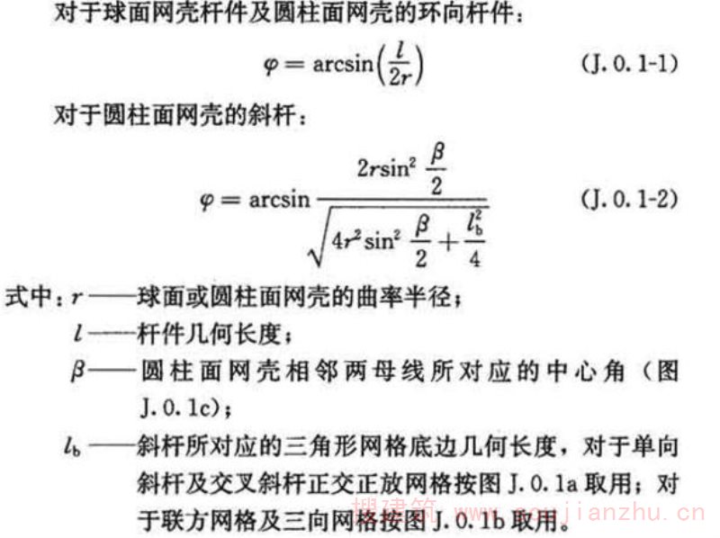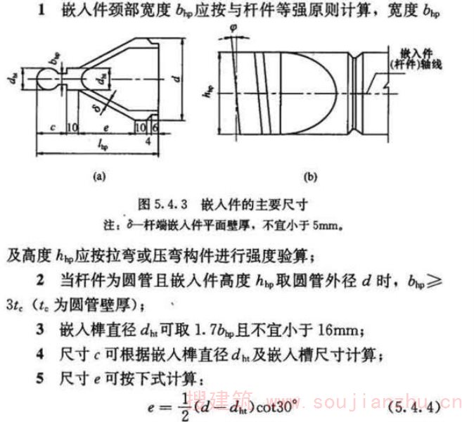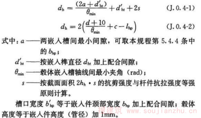 J.0.1 嵌入式毂节点的毂体嵌入槽以及与其配合的嵌入榫呈圆柱状。嵌入榫的中线和与其相连杆件轴线的垂线之间的夹角,即杆件端嵌入榫倾角Φ(图5.4.3b),可分别按下列公式计算: