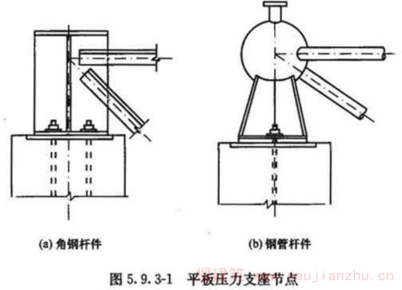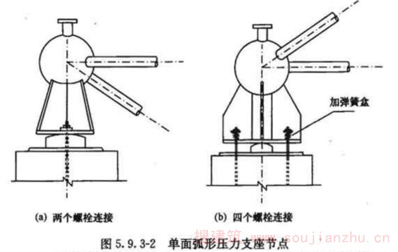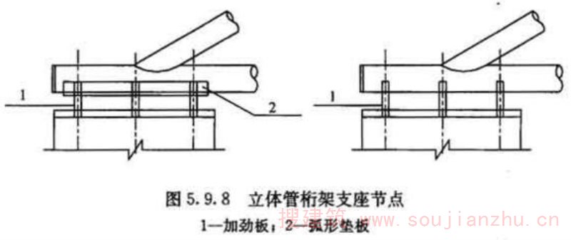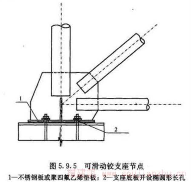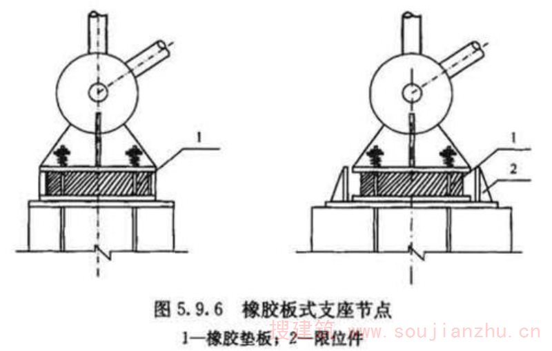 2 橡胶垫板的长边应顺网架支座切线方向平行放置,与支柱或基座的钢板或混凝土间可用502胶等胶粘剂粘结固定;