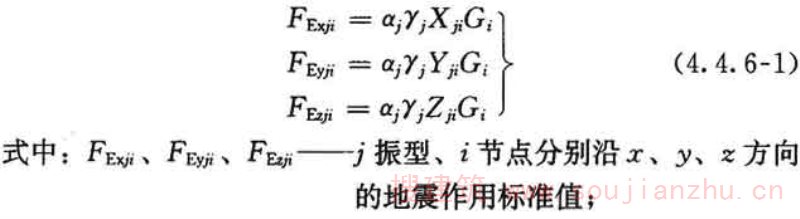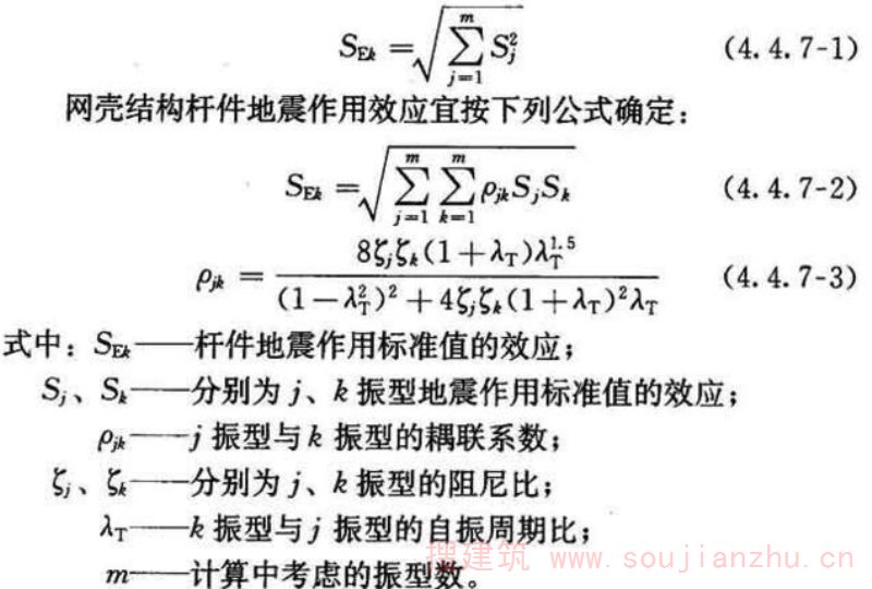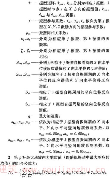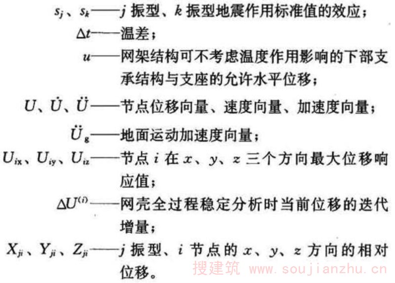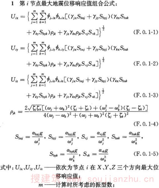F.0.1 当按多维反应谱法进行空间网格结构三维地震效应分析时,三维非平稳随机地震激励下结构各节点最大位移响应值与各杆件最大内力响应值可按下列公式计算: