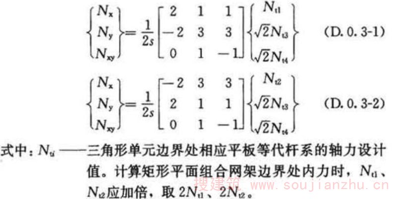 D.0.3 Ⅰ、Ⅲ类三角形单元与Ⅱ、Ⅳ类三角形单元(图D.0.1b)内的平板内力设计值