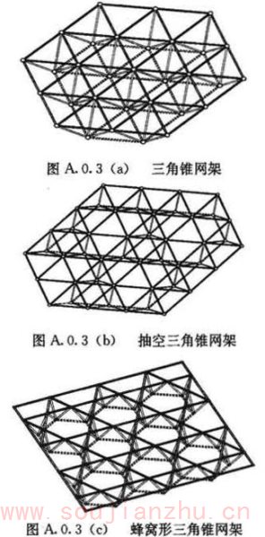 3.1.1 网架结构可采用双层或多层形式;网壳结构可采用单层或双层形式,也可采用局部双层形式。