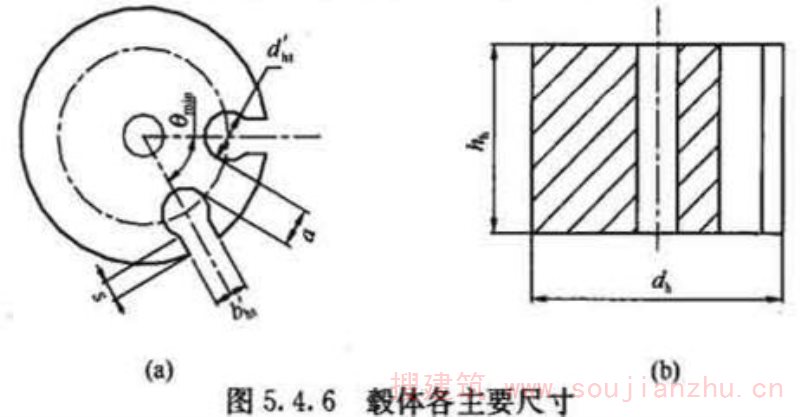 J.0.4 毂体的其他各主要尺寸(图5.4.6)应符合下列规定:毂体直径d h 应分别按下列公式计算,并按计算结果中的较大者选用。