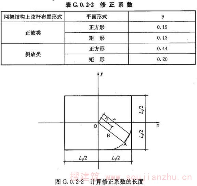 G.0.2 对于周边简支、平面形式为矩形的正放类和斜放类(指上弦杆平面)用于屋盖的网架结构,在竖向地震作用下所产生的杆件轴向力标准值可按下列公式计算: