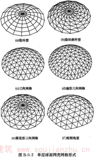 B.0.2 单层球面网壳网格可采用下列六种形式: