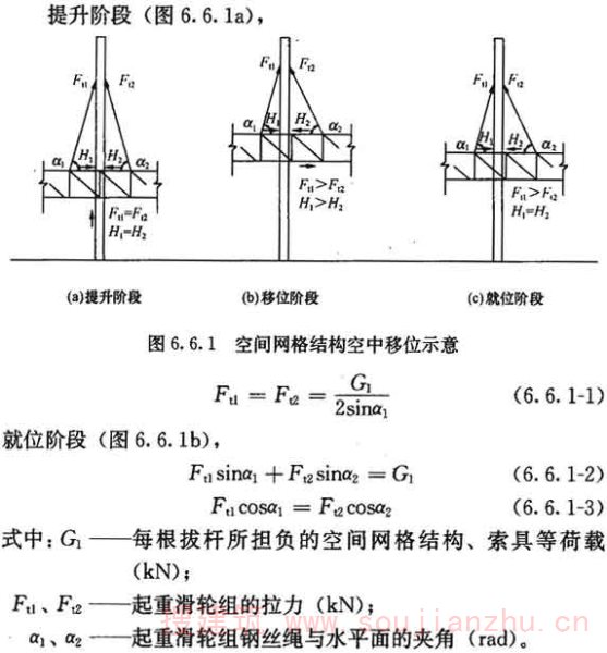 6.11.2 空间网格结构安装中如支座标高产生偏差,可用钢板垫平垫实。如支座水平位置超过允许值,应由设计;监理、施工单位共同研究解决办法。严禁用捯链等强行就位。