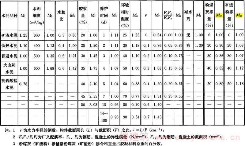 m——与水泥品种、浇筑温度等有关的系数;