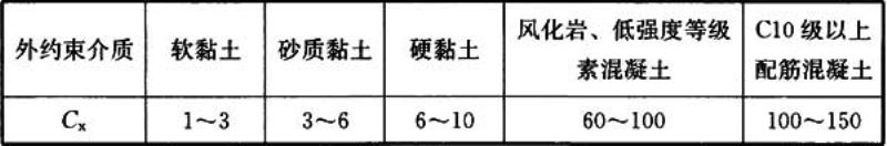 C x ——外约束介质的水平变形刚度(N/mm 3 ),可按表B.6.4取值。