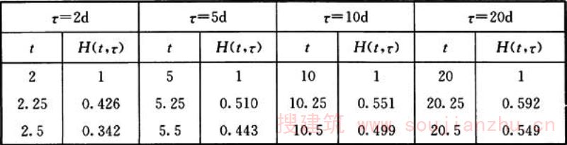 注:τ为龄期,H(t,τ)为在龄期为τ时产生的约束应力,延续至t时的松弛系数。