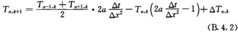 △T n,k ——第n层内部热源在k时段释放热量所产生的温升。a(△t/△x 2 )的取值不宜大于0.5。