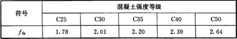 f tk ——混凝土抗拉强度标准值(MPa),可按表B.7.1取值;