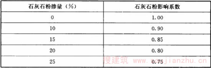 2.0.4 石灰石粉影响系数 influence value of ground limestone
