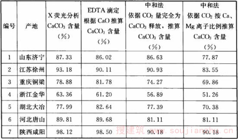 3.1.1石灰石粉化学成分以CaCO3为主要含量,本规程规定石灰石粉中CaCO3含量不小于75%。规定石灰石粉中CaCO3含量的下限指标主要是明确区分石灰石粉与其他石粉。某些岩石粉性能与石灰石粉有较大区别,如对水和外加剂的吸附。 石灰石易于粉磨加工,有研究结果表明,采用水泥厂开流磨在粉磨初期,石灰石粉的平均粒径、中径值(D50)随粉磨时间的延长迅速降低,比表面积及细度快速增大,在粉磨15min后,石灰石粉的平均粒径、中径值随粉磨时间的延长减小速率放慢,趋于平稳。此后比表面积增加速率与所耗电能比值迅速下降。因此,宜从平衡石灰石粉性能和生产能耗两方面综合考虑,制定石灰石粉的细度指标或比表面积指标。由于细度相对比表面积来说测试比较便捷,应用较广,本规程选用细度指标控制。从平衡石灰石粉性能和生产能耗两方面综合考虑确定细度为45μm方孔筛筛余不应大于15%。 试验表明,石灰石粉的7d和28d活性指数一般均大于65%,接近于70%,比较容易满足本规程规定的7d和28d活性指数不应小于60%。应该说明,活性指数并非认为石灰石粉具有明显的活性,该指标也不是反映石灰石粉本质特性的技术指标,但该指标作为混凝土质量控制的指标是必要的。石灰石粉的活性指数在有的标准或文献中称为抗压强度比。因活性指数在试验方法和物理意义上更为广泛地被理解和应用,本规程仍称为活性指数,国外标准亦多如此称呼。 流动度比与需水量比都是反映石灰石粉同一性能的指标,由于流动度比测定起来相对快捷方便,因此本规程采用流动度比指标。石灰石粉由于对水和外加剂的吸附性较小,因而表现出一定的减水作用。试验结果表明,石灰石粉流动度比一般接近100%或大于100%。流动度比是衡量石灰石粉在混凝土中应用是否具有技术价值的重要指标,该指标越高,说明石灰石粉的减水效应越明显,对混凝土拌合物的和易性改善作用越明显。还需要说明的是,在掺加减水剂的情况下,石灰石粉与其他岩石粉的差别更为明显。品质优良的石灰石粉对水和外加剂的吸附小,在混凝土中的应用价值更加明显。应该注意,本规程规定的测试石灰石粉的流动度比试验中未掺加减水剂。 亚甲蓝值是反映石灰石粉吸附性的技术指标,该值是石灰石粉能否用于混凝土并发挥减水效应的重要技术指标。值得特别注意的是,本规程确定MB值的试验方法与一般情况不同:采用50g石灰石粉和150g标准砂混合后进行测试。 在上述石灰石粉的技术指标中,碳酸钙含量、流动度比、亚甲蓝值尤为关键。一般情况下,优先选用碳酸钙含量高、细度适宜、流动度比大、亚甲蓝值小的石灰石粉。石灰石粉中碳酸钙含量越高,石灰石粉在混凝土中越能发挥其优势特性。一般来说,石灰石粉越细,在混凝土中的减水效应和填充效应越明显,有利于改善混凝土的性能,但应考虑细度、性能和能耗之间的平衡关系。因此,选择适宜的细度也是需要综合考虑的。含泥量往往会非常明显地影响到石灰石粉的吸附性,含泥量越高,亚甲蓝值也越高,这时不仅需要增加外加剂的用量,还会在一定程度上影响混凝土的拌合物性能和硬化混凝土的性能,从而大大削弱在混凝土中掺用石灰石粉带来的技术和经济效益。 编制组曾对石灰石粉中碳酸钙含量测试方法开展了专题研究,对X荧光分析法、EDTA滴定法、酸碱中和法三种方法进行了对比研究(见表1和表2),从测试的准确度及测试方法的普适性考虑,选用EDTA滴定法作为本规程测试方法,具体参照现行国家标准《建材用石灰石、生石灰和熟石灰化学分析方法》GB/T5762规定的试验方法测定。 表1不同测试方法的石灰石粉中CaCO3含量结果