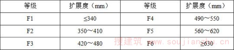 4.1.1本条规定与《混凝土质量控制标准》GB50164一致,将坍落度划分为5个等级,扩展度划分为6个等级。