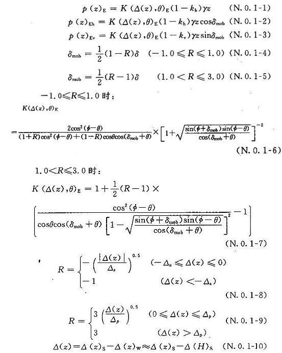 K(Δ(z),θ)E——任意侧向位移条件下的地震土压力系数,可按式(N.0.1-6)或式(N.0.1-7)计算;