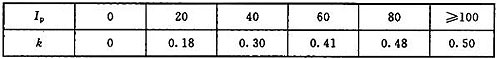 k——与黏性土的塑性指数Ip有关的常数,可按表N.0.1-2取值。
