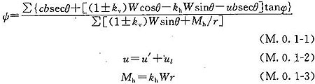 ul——地震引起的条块底面中点的超孔隙水压力,可按式(M.0.3)计算;采用总应力分析方法时,应取0;