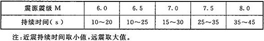 4 人工模拟地震加速度时程的持续时间可按表L.0.2取值。