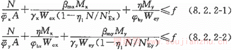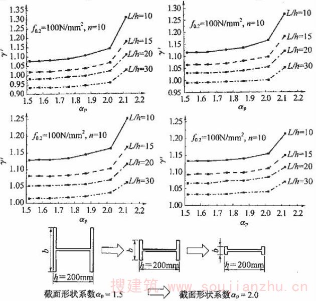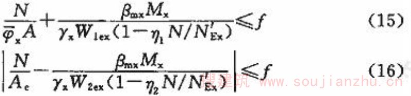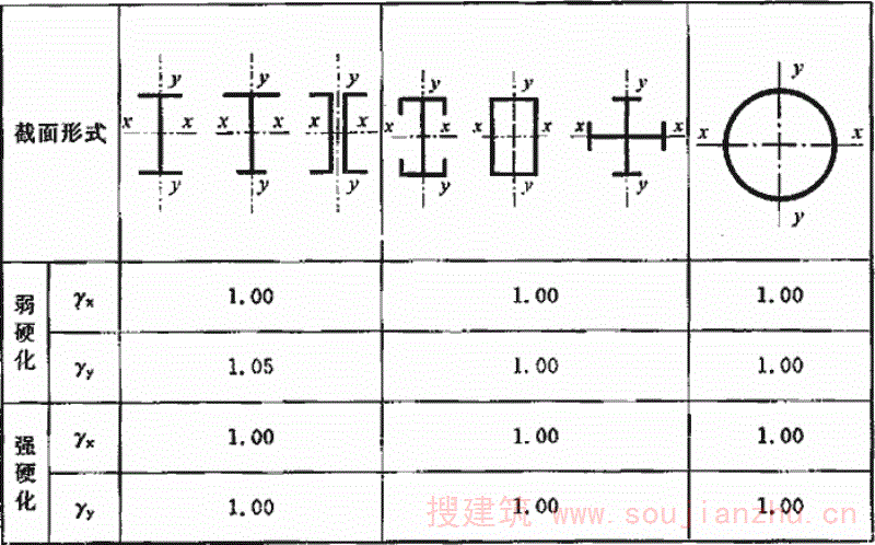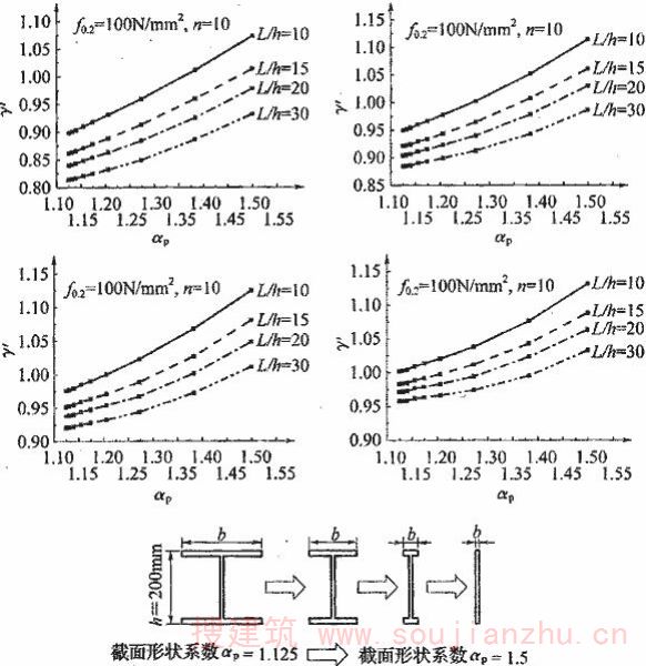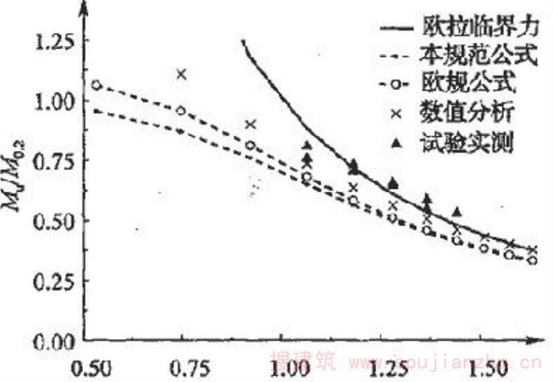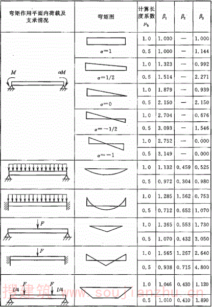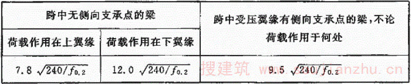 l y ——梁的侧向计算长度, l y = μ b l , μ b 为侧向计算长度系数;在跨间无侧向支撑时取1;跨中设一道侧向支撑或跨间有不少于两个等距布置的侧向支撑时取0.5;